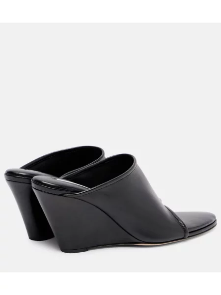 Kožené mules na klínovém podpatku na ramínka