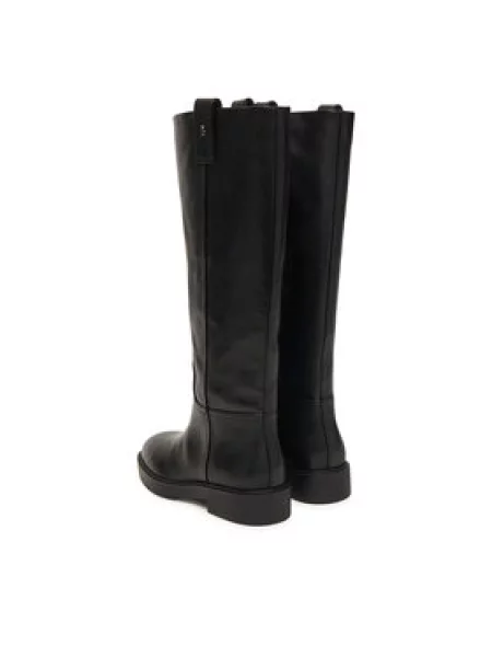 Kožené kozačky Nokwol Jose Black Leather na plochém Jose Black Leather černá