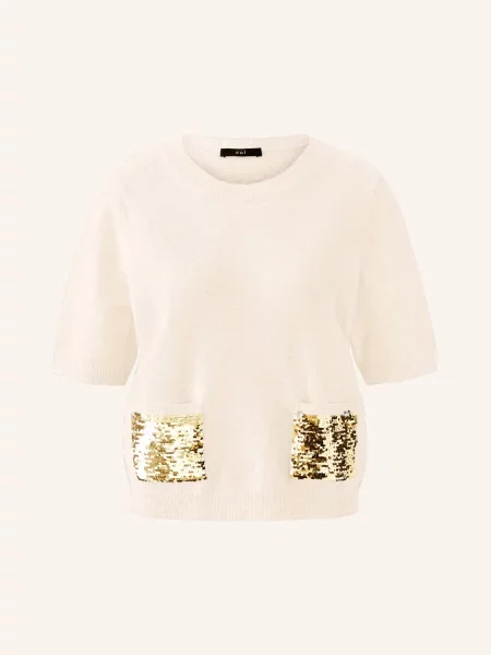 Pletené Tričko S Flitry krémová