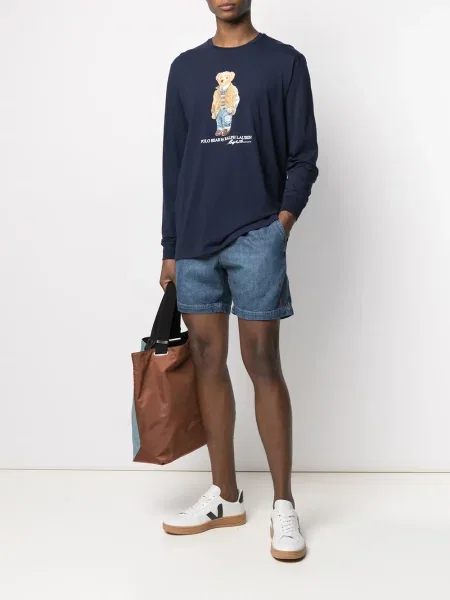 Pánské džínové šortky s výšivkou