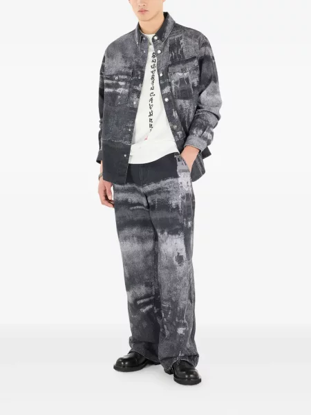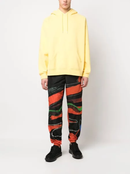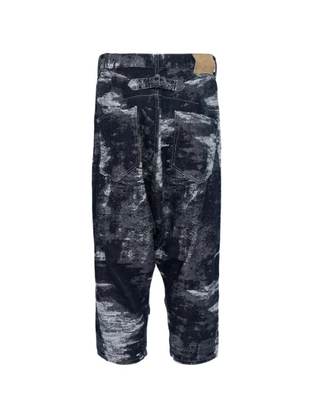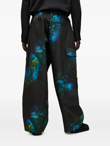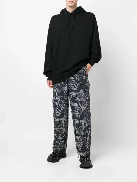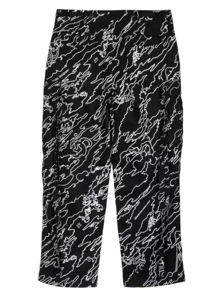 Yohji Yamamoto Hedvábné kalhoty s potiskem s abstraktním vzorem