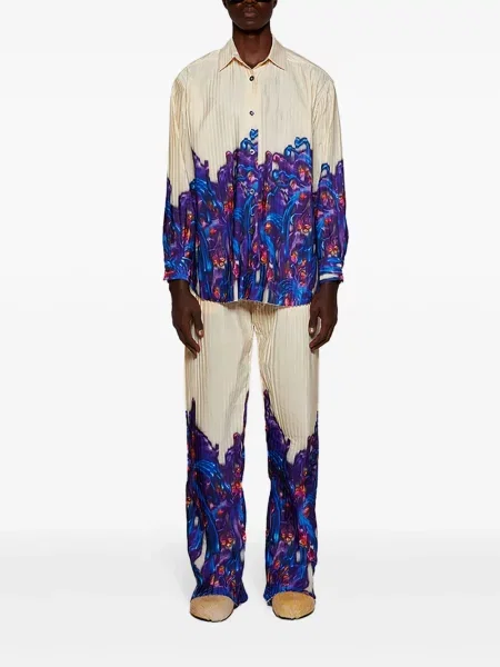 Homme Plissé Issey Miyake Plisované kalhoty s potiskem s abstraktním vzorem