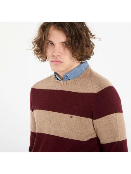 Tommy Hilfiger Svetr Lambswool Crew Neck Safari Canvas Heather/ Deep Burgundy Heather XL